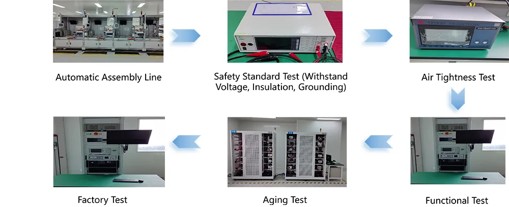 اس مصنوع نے گھر اور بیرون ملک مستند سرٹیفیکیشن حاصل کیے ہیں ، جن میں سی سی سی (چین لازمی سرٹیفیکیشن) ، سی ای (یورپی یونین) ، یو ایل (ریاستہائے متحدہ) ، اور EN50498 شامل ہیں۔ یہ NB/T33001-2025 اور GB31241-2014 معیارات کے ساتھ تعمیل کرتا ہے ، جس سے بجلی کی حفاظت اور برقی مقناطیسی مطابقت کو یقینی بنایا جاتا ہے۔ ہمارے پاس ایک جدید پروڈکشن بیس ہے اور V0 ریٹنگ اور FR-4 فائبر گلاس پی سی بی بورڈز کے ساتھ شعلہ retardant ABS+PC جامع میٹریل ہاؤسنگ کو اپناتے ہیں۔ کلیدی سولڈر جوڑوں پر لہر سولڈرنگ ٹکنالوجی کا استعمال کرتے ہوئے کارروائی کی جاتی ہے اور انہوں نے سخت ٹیسٹ پاس کیے ہیں جیسے 5،000 اندراج/نکالنے کے چکر ، کمپن مزاحمت ، اور نمک کے اسپرے سنکنرن مزاحمت۔ ہر یونٹ میں فیکٹری چھوڑنے سے پہلے 72 گھنٹے کی مکمل بوجھ عمر بڑھنے کا امتحان ہوتا ہے ، جس میں 100 qual قابلیت کی شرح حاصل ہوتی ہے۔ ہم نے ایک جامع کوالٹی کنٹرول سسٹم قائم کیا ہے جو خام مال کی خریداری سے لے کر تیار شدہ مصنوعات کی فراہمی تک مکمل سراغ لگانے کے قابل بناتا ہے۔